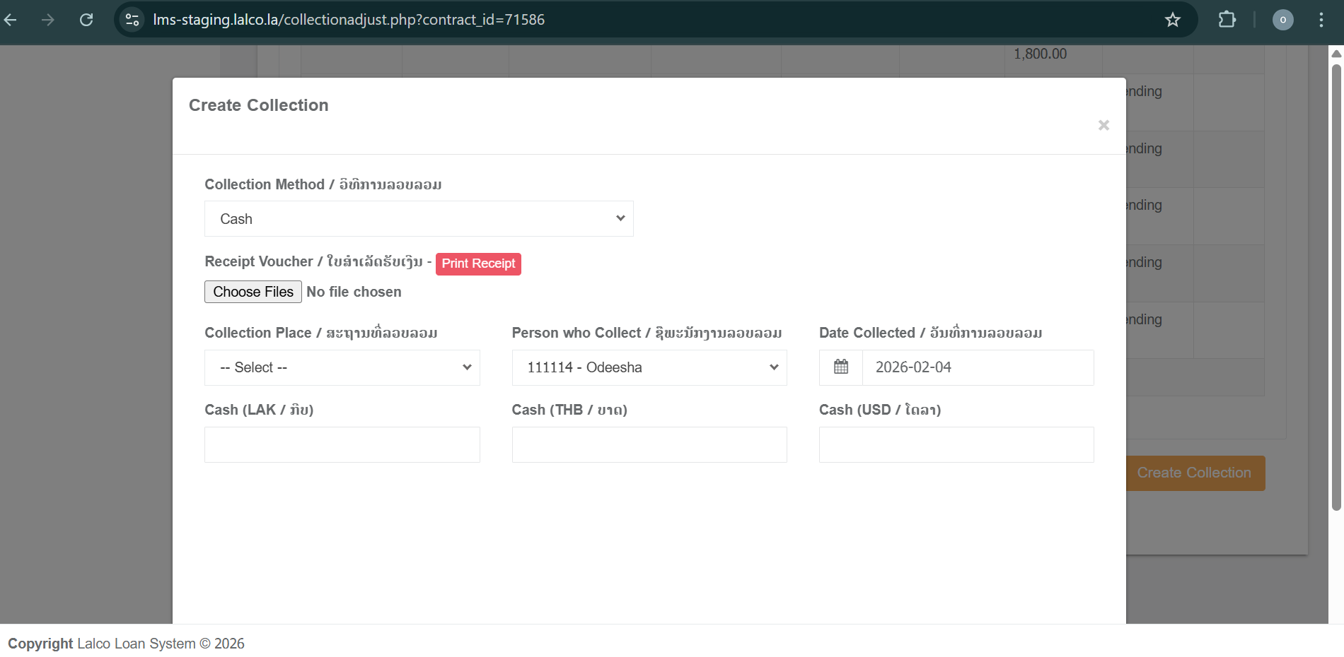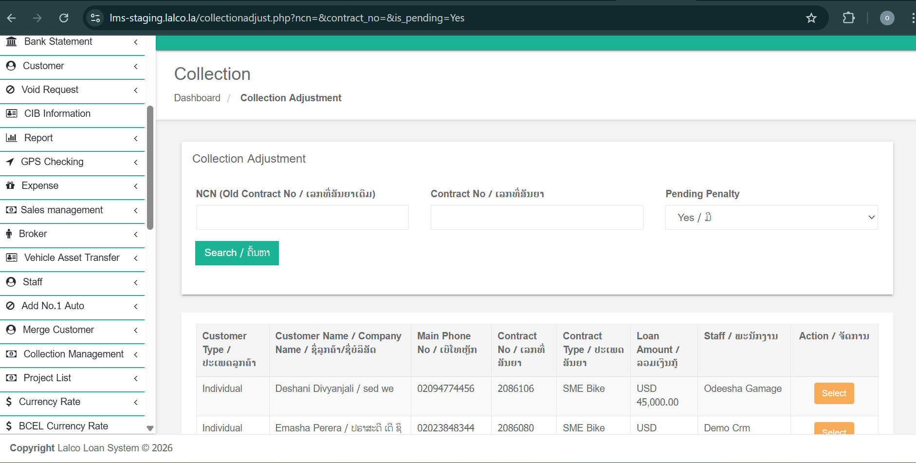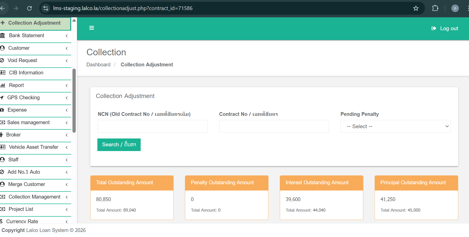 The Collection Adjustment module is used to search for an existing contract, review its financial details, and manage collections, accruals, and rescheduling of payment schedules. This module helps users accurately track outstanding amounts and maintain proper collection records.